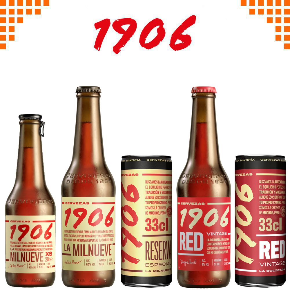 1906 is a premium beer crafted by Hijos de Rivera, the makers of Estrella Galicia, combining over a century of brewing tradition with a dedication to excellence. Made from carefully selected malts and hops, 1906 beers are known for their depth of flavor, smooth texture, and refined character.