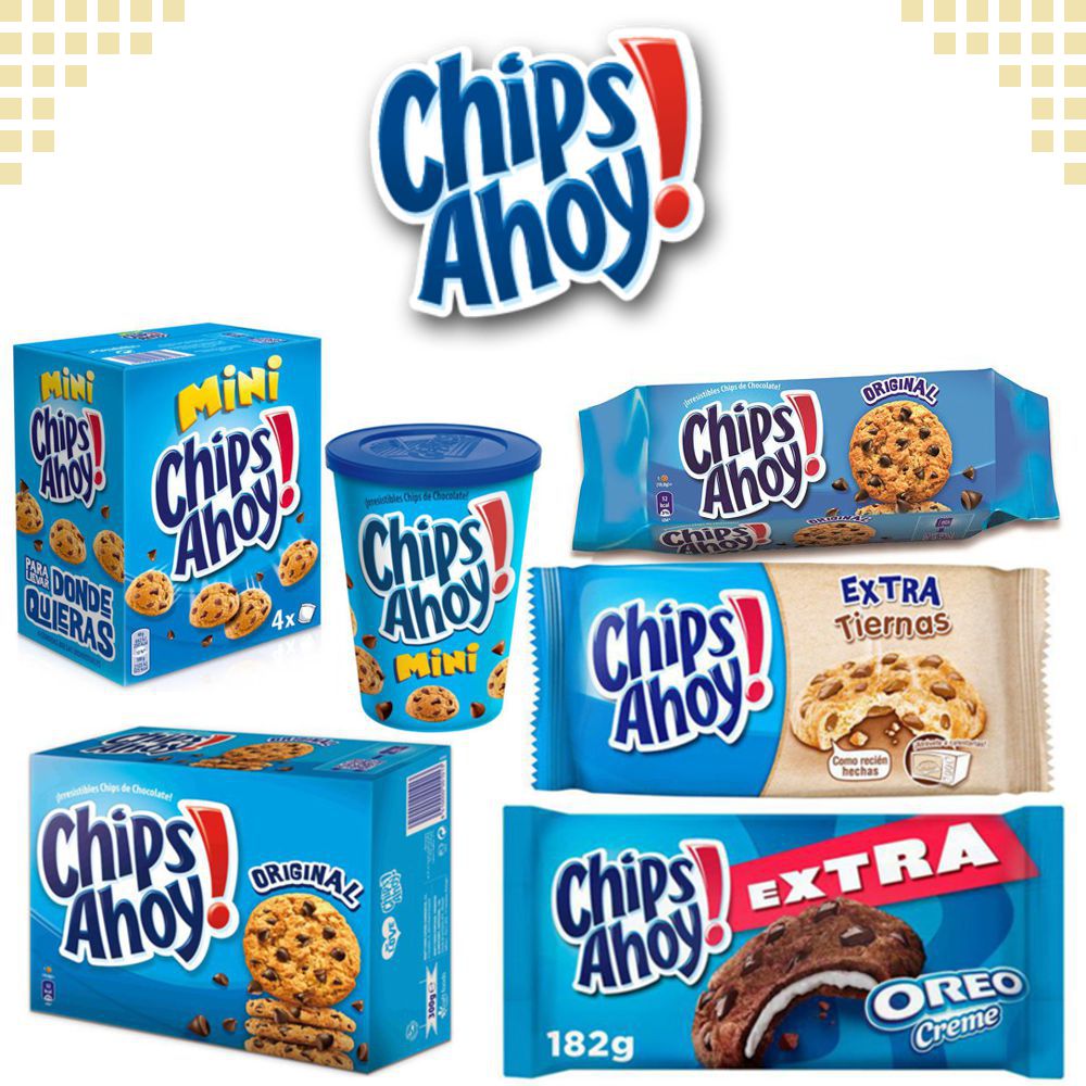 Chips Ahoy! cookies are available in different variations such as, original, reduced-fat, chunky, chewy, and candy-blasts; each can be identified by variations in the color of the package. For example, Chips Ahoy! original has blue color packaging.