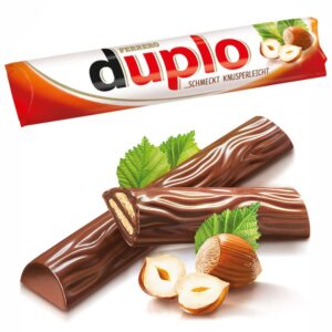 Ferrero® Duplo is a refined chocolate treat that masterfully blends crispness and creaminess in every bite. Each delicate bar features a light, crunchy wafer layered with a smooth, velvety hazelnut cream, all wrapped in a fine coating of rich milk chocolate. This perfect combination creates a multi-textured experience that is both satisfying and irresistibly delicious.