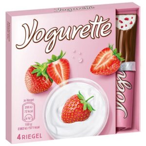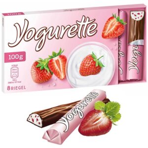 The secret behind Yogurette’s signature taste lies in its carefully selected ingredients. Made with high-quality yogurt and real strawberry pieces, the creamy filling offers a delightfully fresh flavor that contrasts perfectly with the rich and velvety milk chocolate shell. This combination creates a light yet indulgent experience, ideal for those who love a fruity twist in their chocolate.