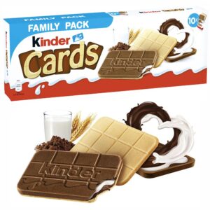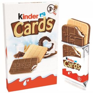Kinder Cards bring together the perfect combination of crispy wafer, creamy milk chocolate, and a smooth hazelnut filling for an indulgent yet light treat. Each bar is carefully crafted to deliver a satisfying crunch with a silky smooth chocolate experience, making it the ideal snack to brighten up any moment. With its compact and easy-to-share design, Kinder Cards are made for those who appreciate a sweet, fun, and delightful break from the ordinary. Perfect for sharing with friends or enjoying on your own, Kinder Cards offer a little moment of happiness with every bite.
