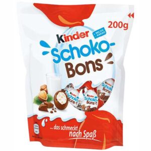 Crafted with Kinder’s commitment to high-quality ingredients and a passion for delicious chocolate creations, Kinder® Schoko-Bons are an irresistible treat that brings happiness to every occasion. Enjoy the smooth, nutty, and chocolaty goodness—one delightful bite at a time!