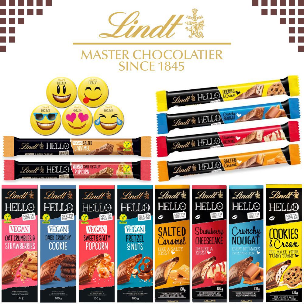 The HELLO range includes a variety of chocolates, such as bars, sticks, and bite-sized treats, available in exciting flavors like Cookies & Cream, Caramel Brownie, and Strawberry Cheesecake. Each product is crafted with Lindt’s signature Swiss chocolate, ensuring the perfect balance of creamy texture and rich taste.