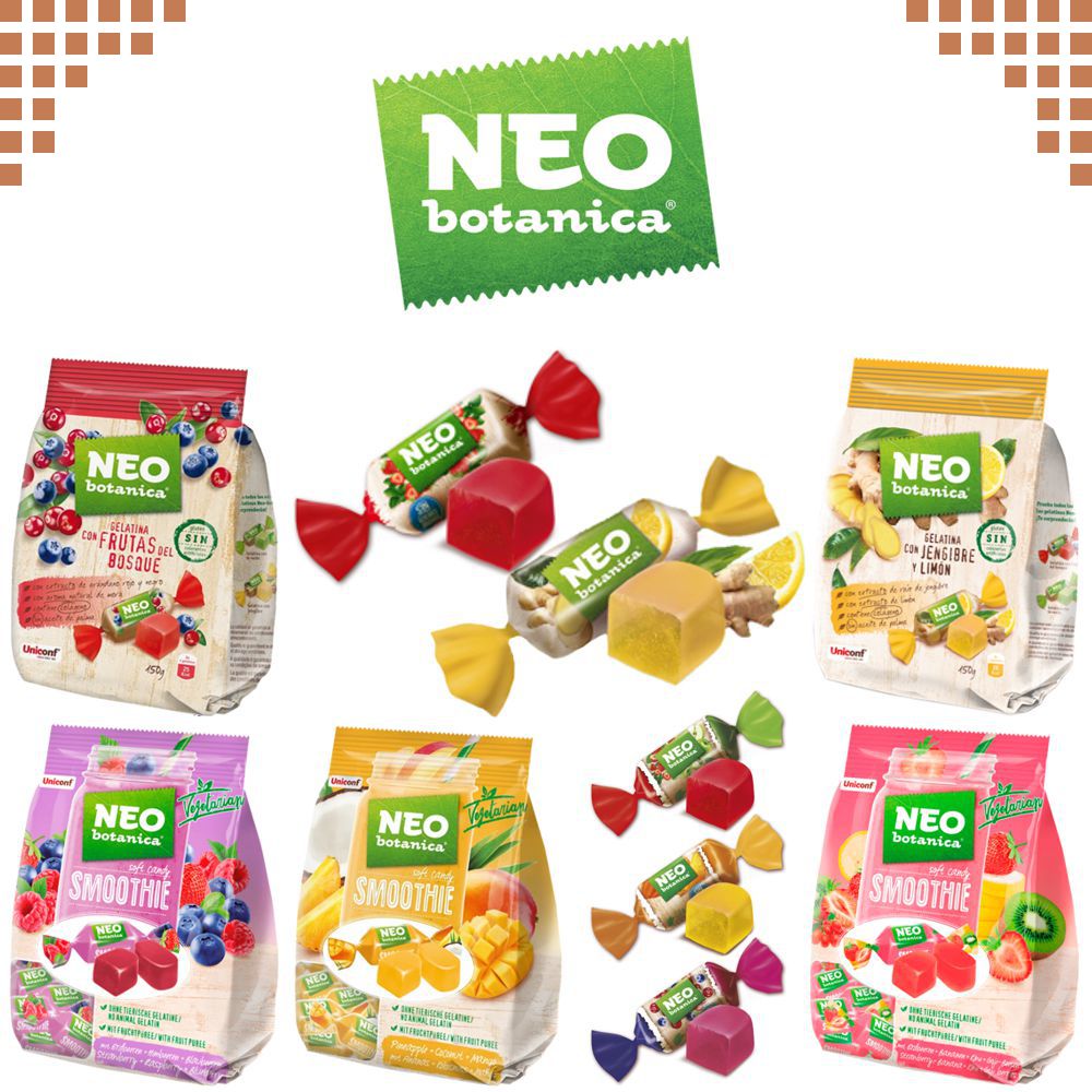 Neo Botanica is a premium confectionery brand that combines the goodness of natural ingredients with delicious, modern flavors. Known for its focus on high-quality and health-conscious treats, Neo Botanica offers a range of soft fruit jellies and sweets made with real fruit juice, natural colors, and no artificial additives.