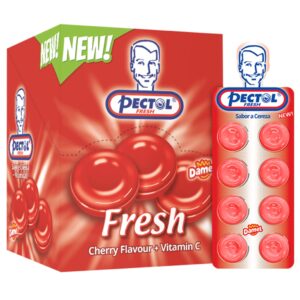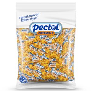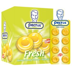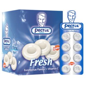 Enjoy with Pectol the intense flavour of a balsamic sweet and maximum freshness thanks to the combination of natural ingredients, essential oils and an exclusive manufacturing process that provides sensations of freshness and immediate relief. Its main flavours (Orange, Lemon and Eucalyptus) are enriched with Vitamin C and do not contain artificial colours.