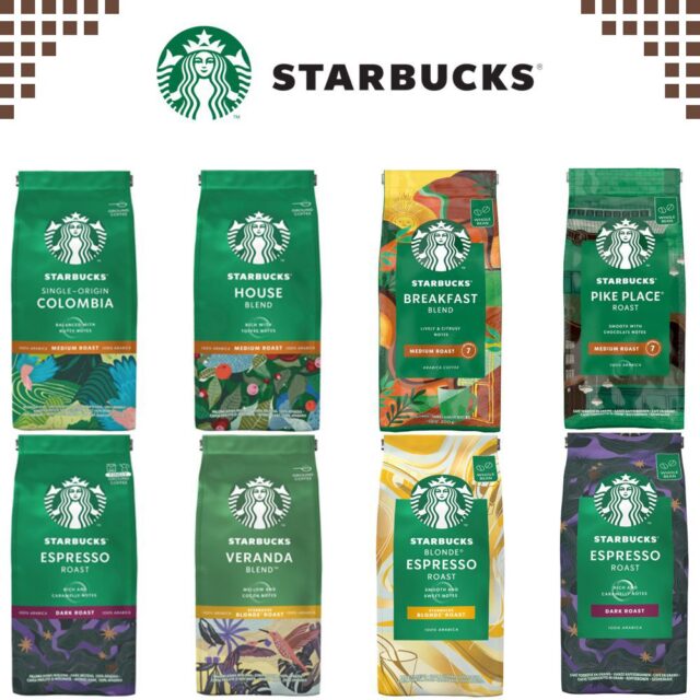 Whether you prefer the full-bodied richness of espresso, the smooth and balanced notes of a medium roast, or a dark, intense brew, Starbucks Beans & Ground deliver the same premium quality found in their cafés. With convenient packaging for both whole beans and pre-ground options, you can enjoy a freshly brewed cup of Starbucks coffee at home, anytime.